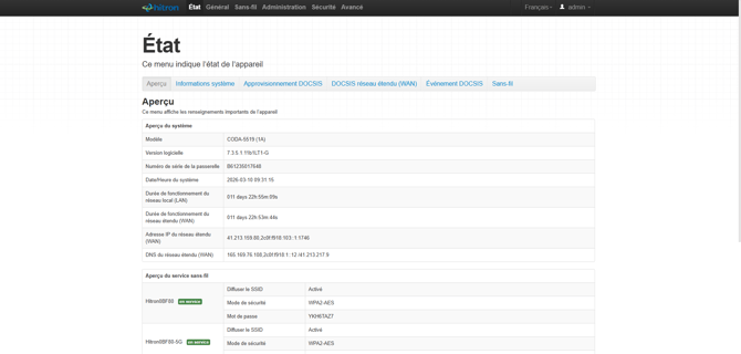 Comment accéder à l'interface de ma box internet Zeop Hitron CODA-5519 pour vérifier et modifier les réglages Wi-Fi, ouverture de port etc.