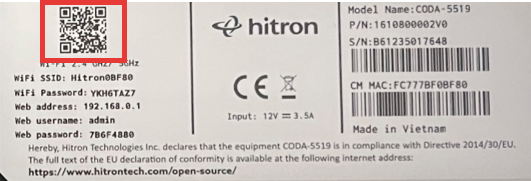 Trouver le nom du réseau et le mot de passe par défaut du Wi-Fi en utilisant l'étiquette collée sous ma box Hitron CODA-5519